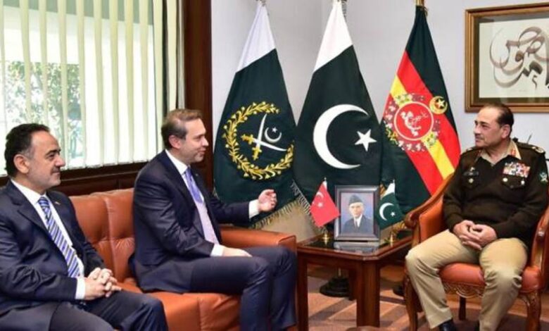 اسلام آباد(ٹی این آئی نیوز)مسلح افواج کے سربراہ فیلڈ مارشل سید عاصم منیر سے ترک وزیر توانائی الپ ارسلان بیرکتار نے جی ایچ کیو میں ملاقات کی۔ اس اہم ملاقات میں باہمی دلچسپی کے امور اور توانائی کے شعبے میں تعاون پر تبادلہ خیال کیا گیا۔ آئی ایس پی آر کنے بتایا کہ مسلح افواج کے سربراہ فیلڈ مارشل سید عاصم منیر سے ترک وزیر توانائی ملاقات کے دوران پاک ترکی توانائی تعاون کے فروغ اور اسٹریٹجک شراکت داری پر بات چیت ہوئی اور دوطرفہ تعلقات مزید مضبوط بنانے اور مشترکہ اہداف پر اتفاق کیا گیا۔اس موقع پر فیلڈ مارشل سید عاصم منیر نے پاکستان اور ترکی کے تاریخی برادرانہ تعلقات کو اجاگر کیا۔