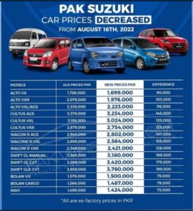 پاک سوزوکی موٹرز نے بھی گاڑیوں کی قیمتوں میں نمایاں کمی کرنےکا اعلان